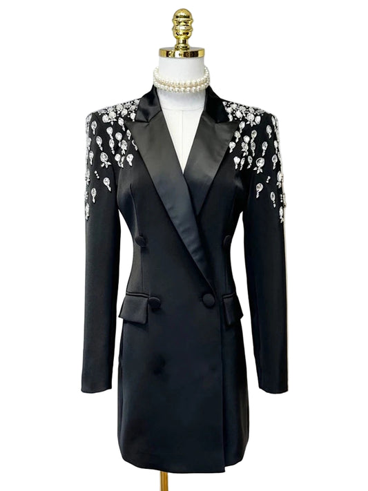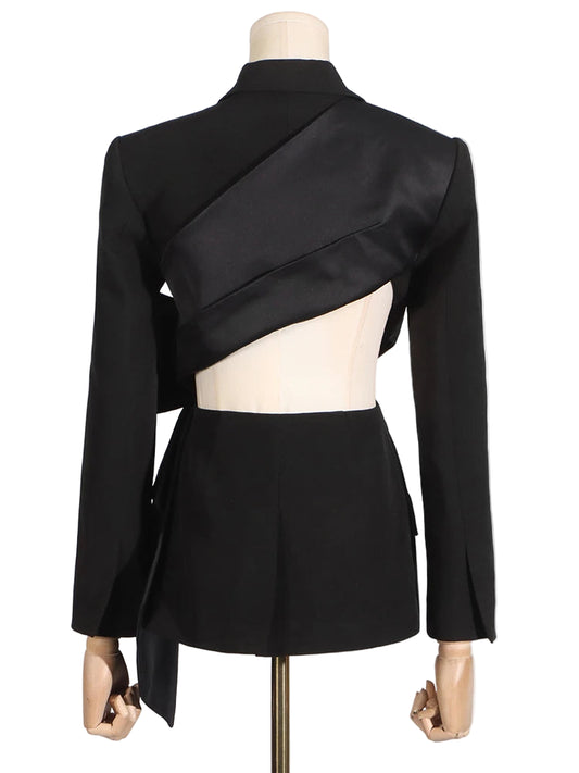 Blazer Femme Ceinturée - Veste Bureau Élégante avec Poches