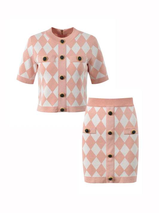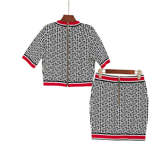 • Ensemble Jupe 2 Pièces Femme Vintage - Motif Géométrique Maille