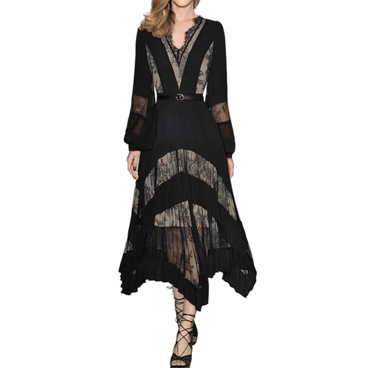 Femme Dentelle Bicolore - Col V Manches Longues Élégante